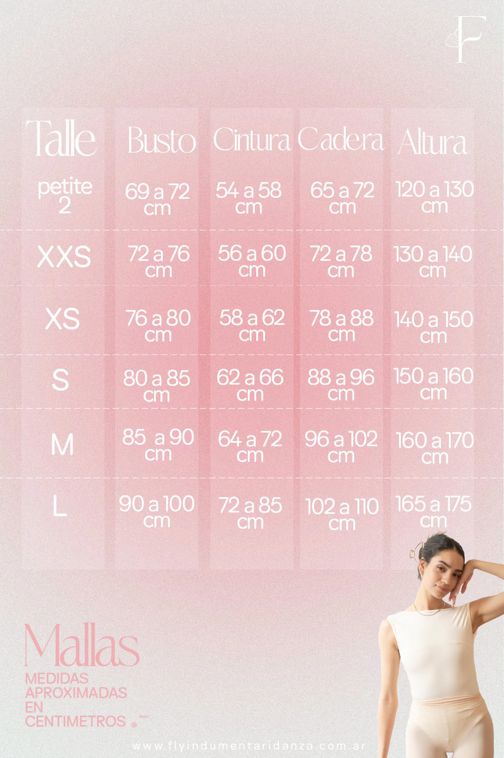 Esta malla de ballet esta diseñada especialmente para bailarinas que buscan comodidad y estilo tanto en clases como en coreografías. Confeccionada en suave lycra forrada por dentro, la malla Nixie ofrece un ajuste perfecto y una sensación de ligereza.