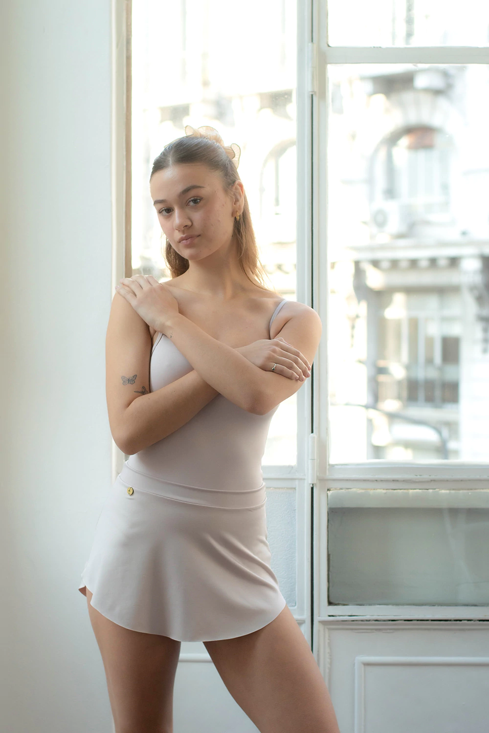 La malla Skylin está diseñada para combinar la elegancia clásica con un toque de originalidad. Su escote recto realza la figura, mientras que los breteles finos y ajustables garantizan un ajuste impecable y una comodidad excepcional, incluso durante los movimientos más exigentes.