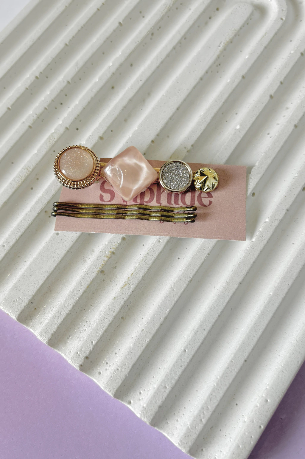 El set Clara incluye una hermosa hebilla con detalles únicos, complementada con tres clips dorados, perfectos para crear peinados originales ideales para tus clases y ensayos de danza.